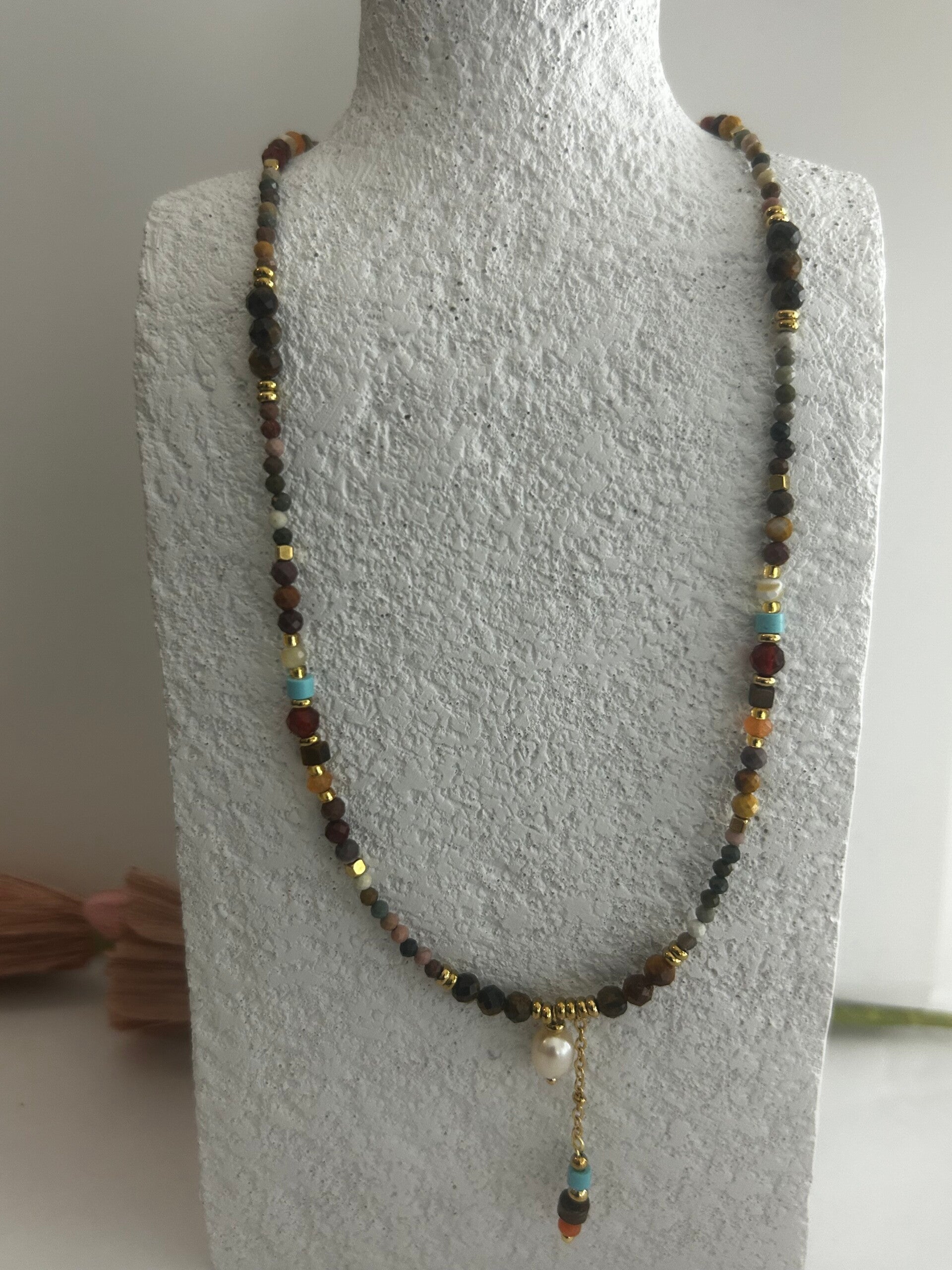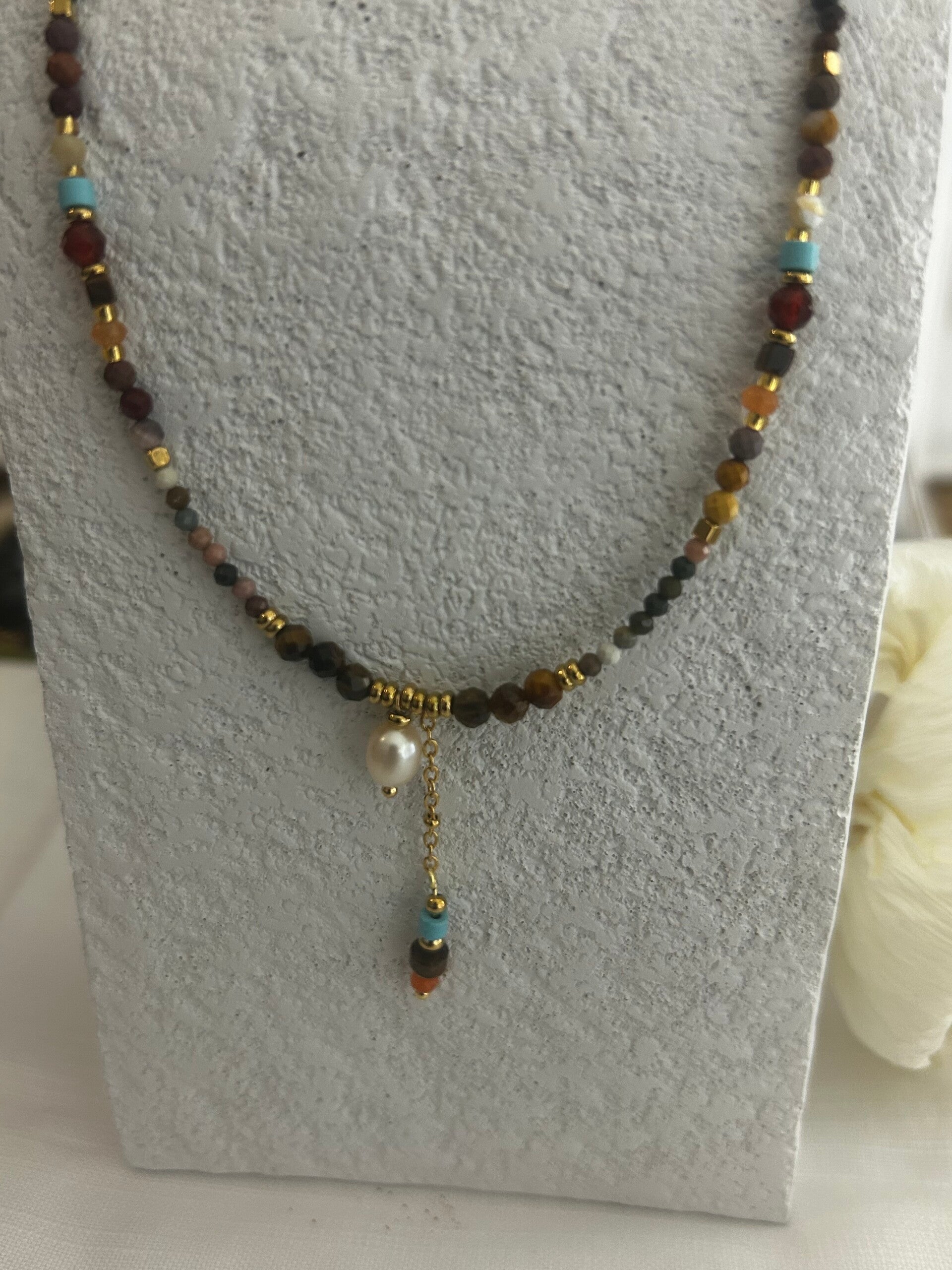 Collier sur chaîne en acier inoxydable en turquoise, africaine, longueur de la chaîne: 40 cm. Longueur de la chaîne de réglage: 5 cm. Longueur du collier 45 cm.